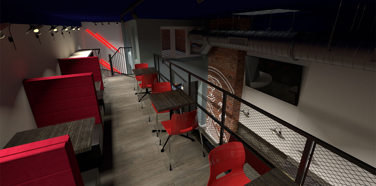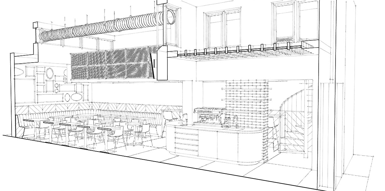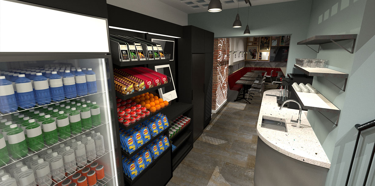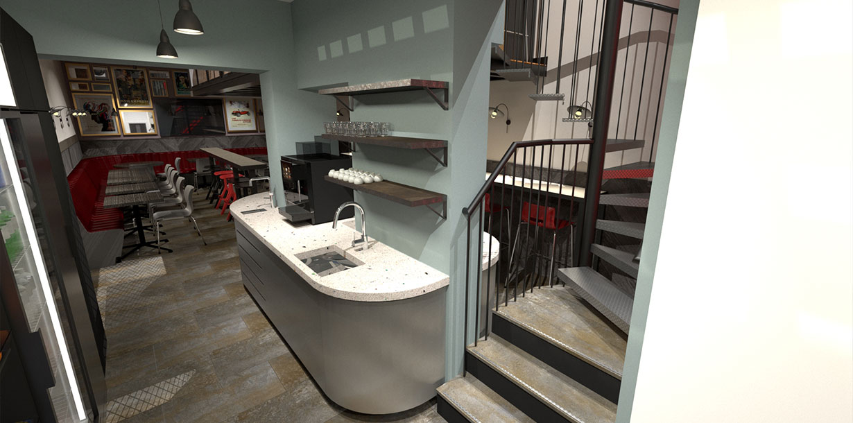 My role was to lead the creative concepting and design, from initial ideas through to the final technical drawings and 3D models. The 3D modelling and rendering was a crucial part of the process, as it was the primary tool used to help key stakeholders, who struggled to visualise the concept from 2D plans, fully understand the project and secure their approval. The aesthetic was inspired by a New York loft, incorporating exposed brick and ducting, with all fixtures, fittings, and furniture carefully selected to create a cohesive and inviting space. The finished cafe has become a positive and functional addition to the building, fostering a strong sense of community and collaboration among the staff.
