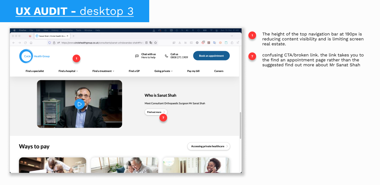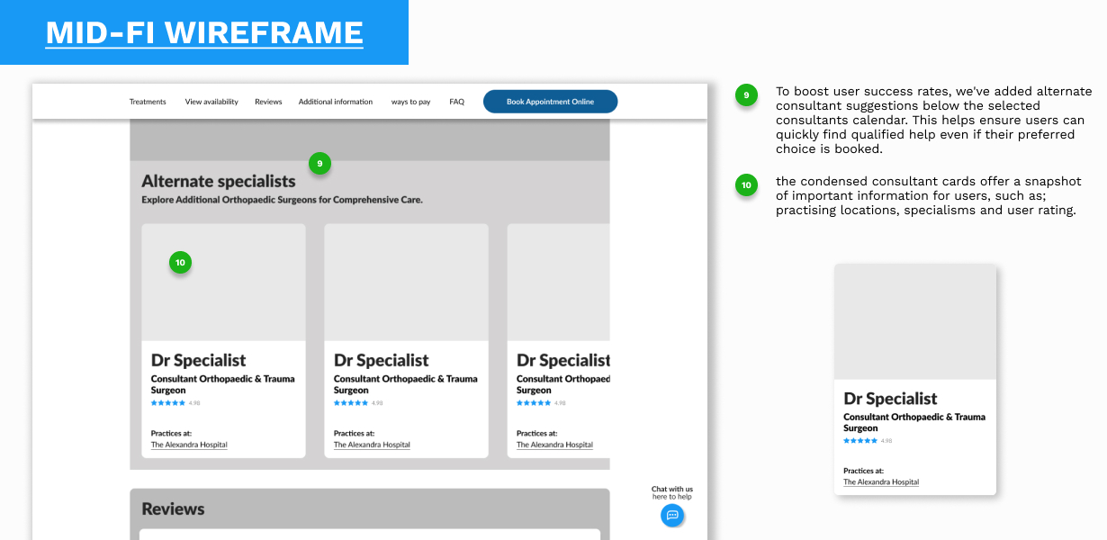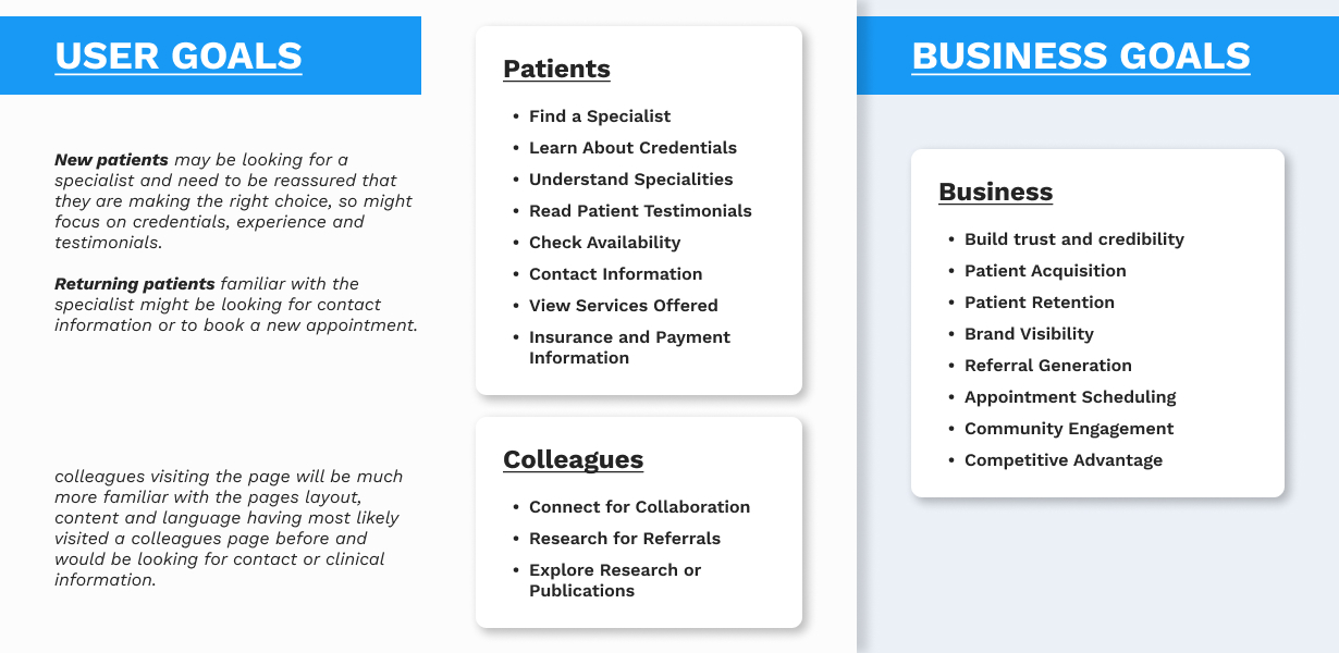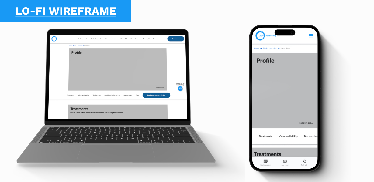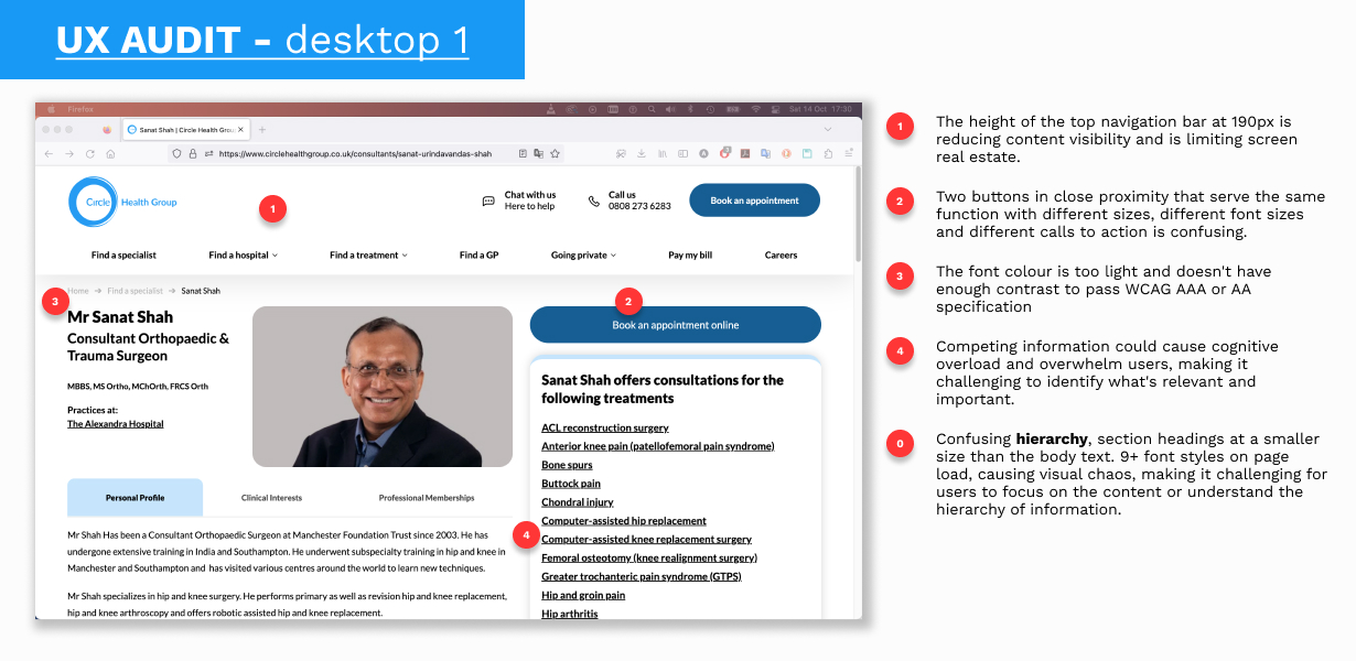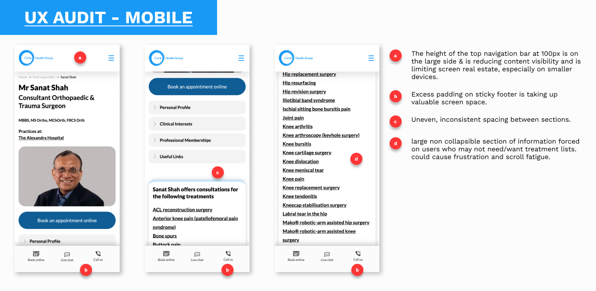 My role involved redesigning a hospital's consultant profile page to make it more accessible and user-friendly for a diverse audience, including patients, colleagues and returning users. The brief was a challenging one, focusing on overcoming language barriers, simplifying complex medical jargon, and creating a design that was both clear and tech-friendly for users with varying digital literacy. The process began with extensive user research and competitor analysis to foster empathy and identify key user needs.
